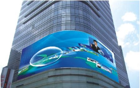 LED异型屏也开始运用至楼宇外墙LED广告中。楼宇拐角处“LED曲面屏”的处理方式,可以扩大广告的可视角度,兼顾到两个方向的受众视角。